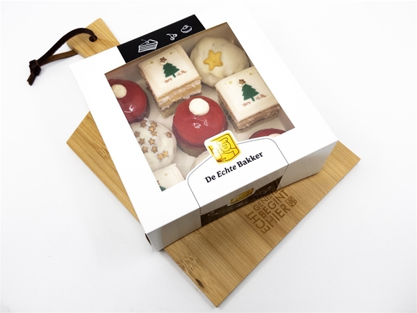 Een doosje gevuld met 9 stuks lekkere mini kerstgebakjes: